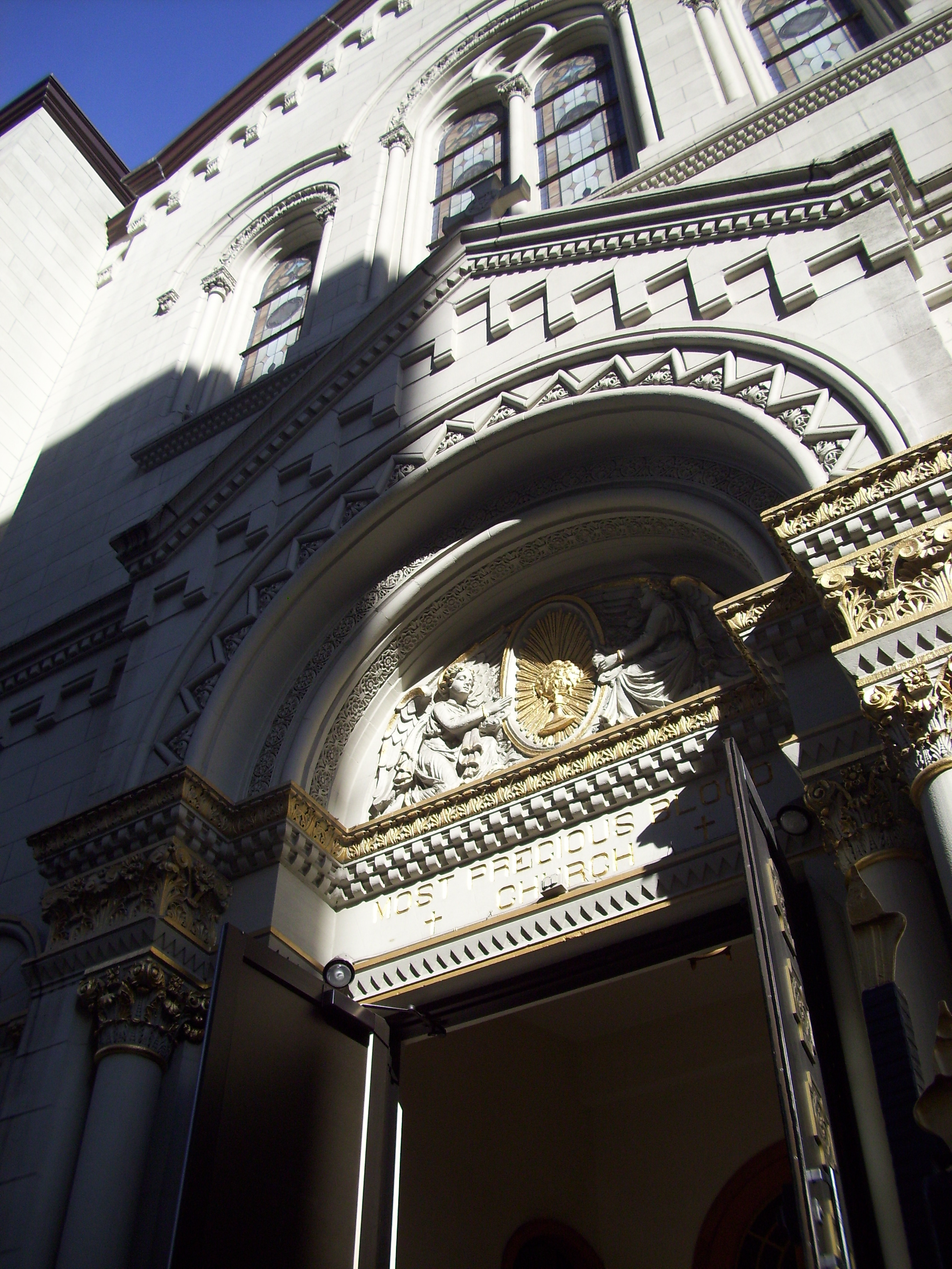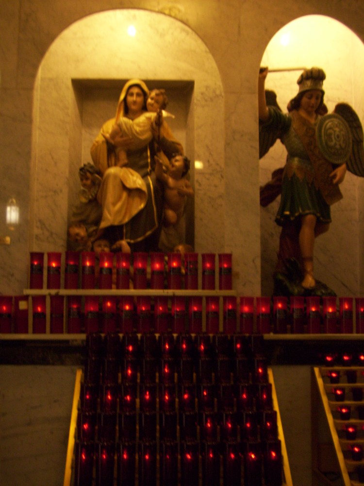 The San Gennaro shrine was behind the church, and so I visited that first. There was an entrance to the church, but then I discovered it was an entrance through the very front and a service was going on, and I was wearing bright red sweatpants and a bright red Graduate Assistants United t-shirt. I couldn’t exactly go unnoticed, so then I went around to Baxter, I think it was, and entered the church from the back.