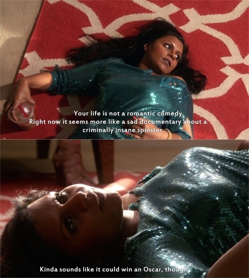 “Your life is not a romantic comedy. Right now it seems more like a sad documentary about a criminally insane spinster. Kinda sounds like it could win an Oscar, though.” -The Mindy Project
