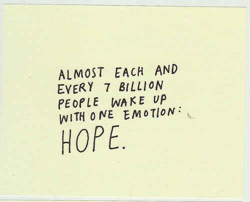 1] Hope–let it fill every single one of your minutes. Hope is a powerful thing. I mean, they say that someone who goes into a medical procedure with the will to fight and live has a better outcome (usually) than someone who is resigned. Hope has power to change our realities.