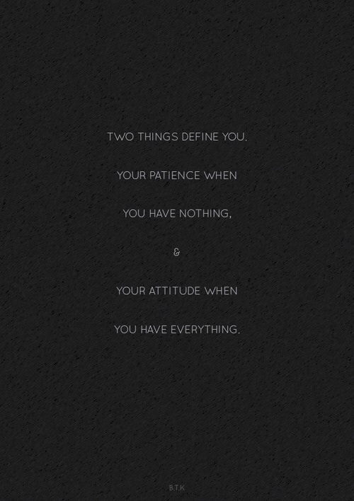 “Two things define you. Your patience when you have nothing & your attitude when you have everything.”