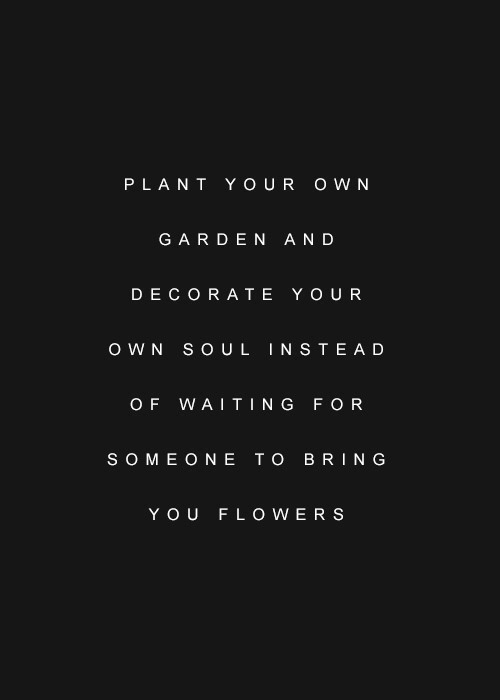 “Plant your own garden and decorate your own soul, instead of waiting for someone to bring you flowers.”