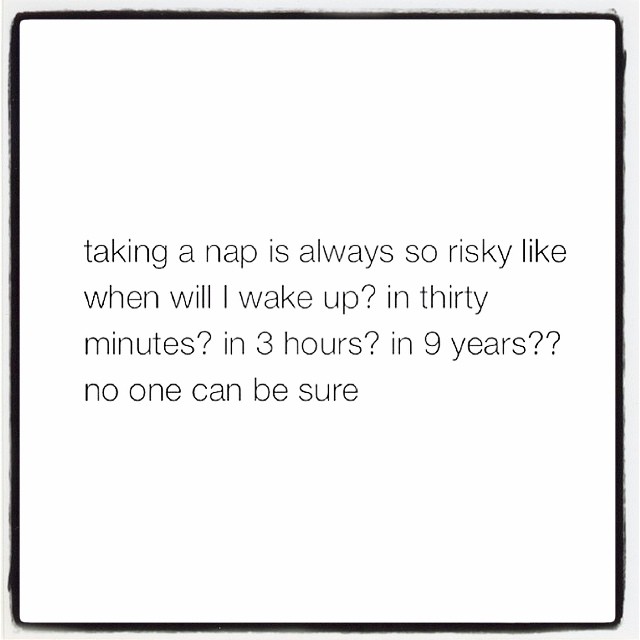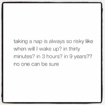 [HAHAHA. This is SO me. I am afraid to fall asleep, even with 20 alarms because God knows when I will actually wake up.]