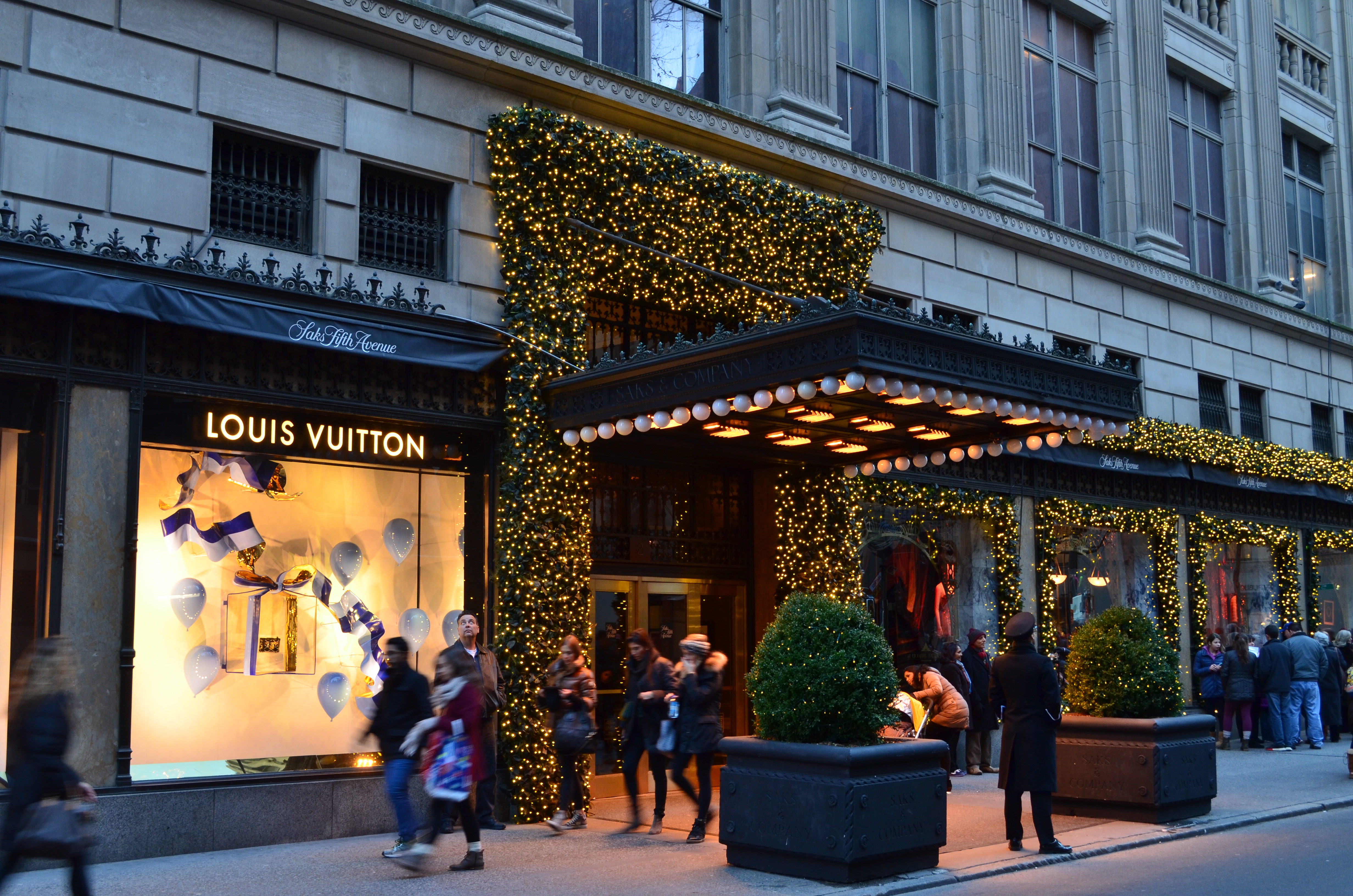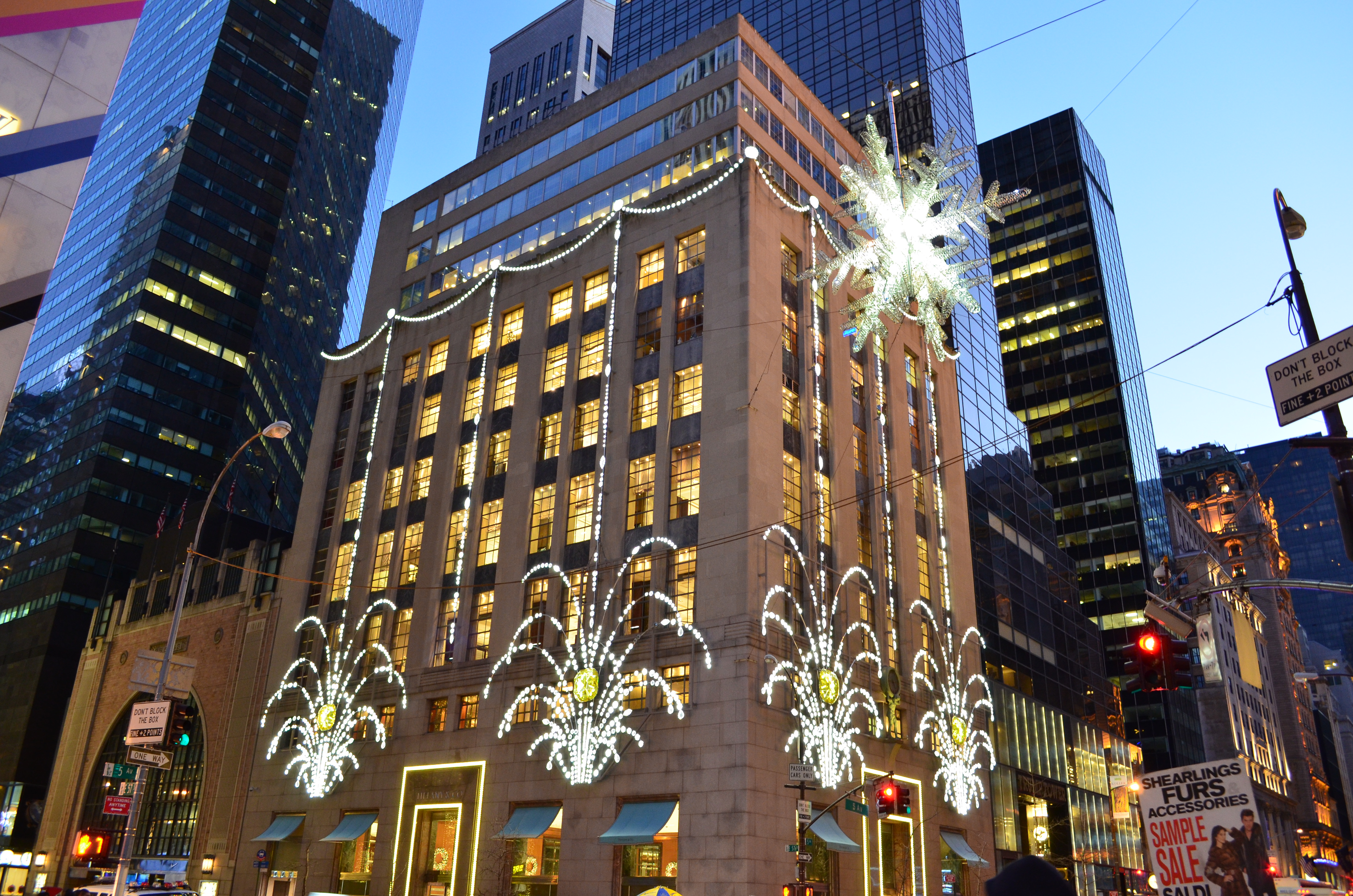 Below is the Tiffany’s building, all decked out. Windows were filled with artistic displays, by theme, with music.