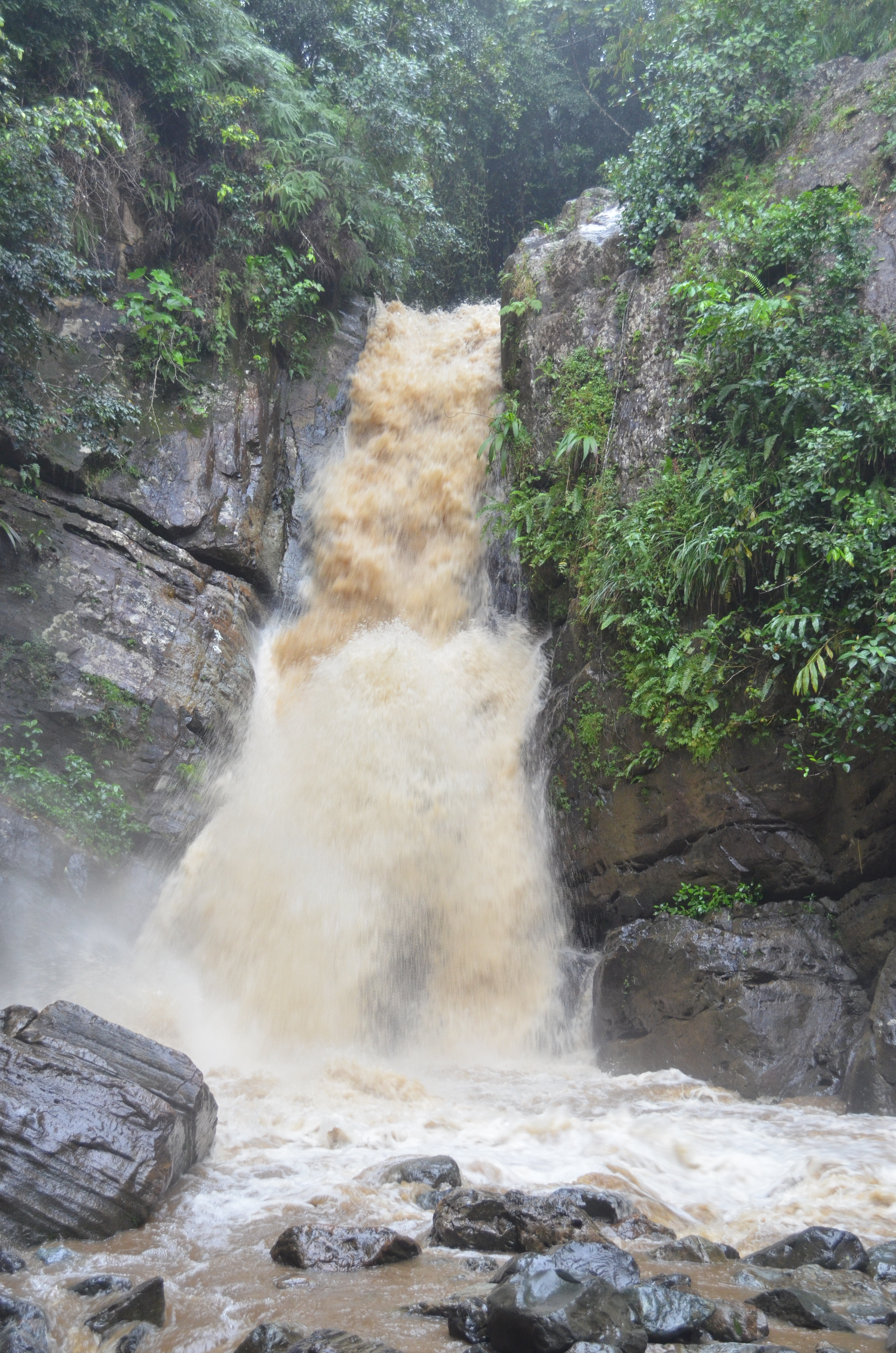 So, we were walking mid-rainforest, getting ready to walk to the last and biggest waterfall, when the downpour started. Typical rainforest rain, I suppose. It would not let up. The stone steps that lead to the waterfall were slippery. I ended up slipping on one, on the way back. I have a nice souvenir scar!