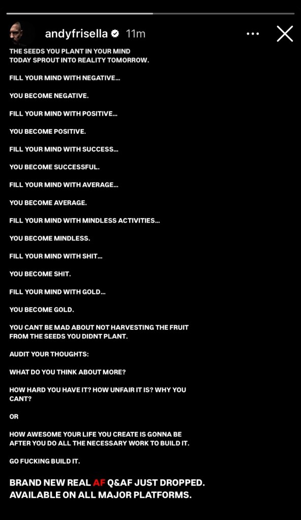 “If we want the world to get better… we have to stop asking if it is offensive and instead ask if it is true.” Andy Frisella