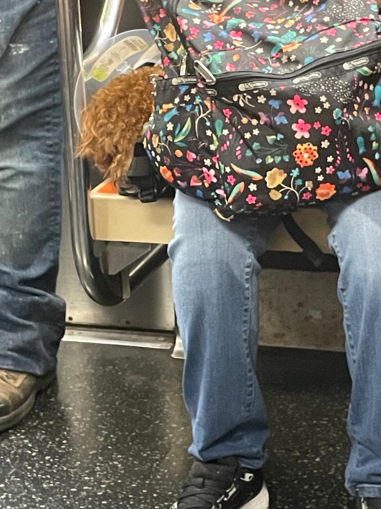 You know who is calm? This little dog wedged into his subway seat.