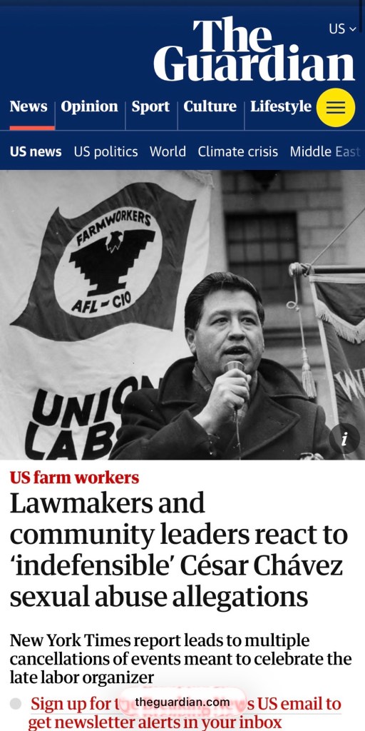 One of the women, Ms. Esmeralda Lopez said to the NYT recalling what she told her mother after meeting him (where he propositioned her)— “Cesar Chavez is just a man.” A sick man at that.